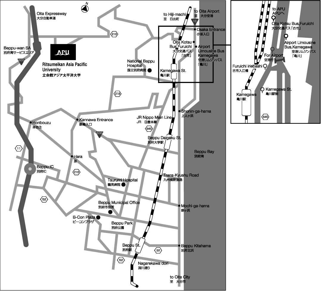 立命館アジア太平洋大学への主な交通機関 *( )内は目安となる所要時間